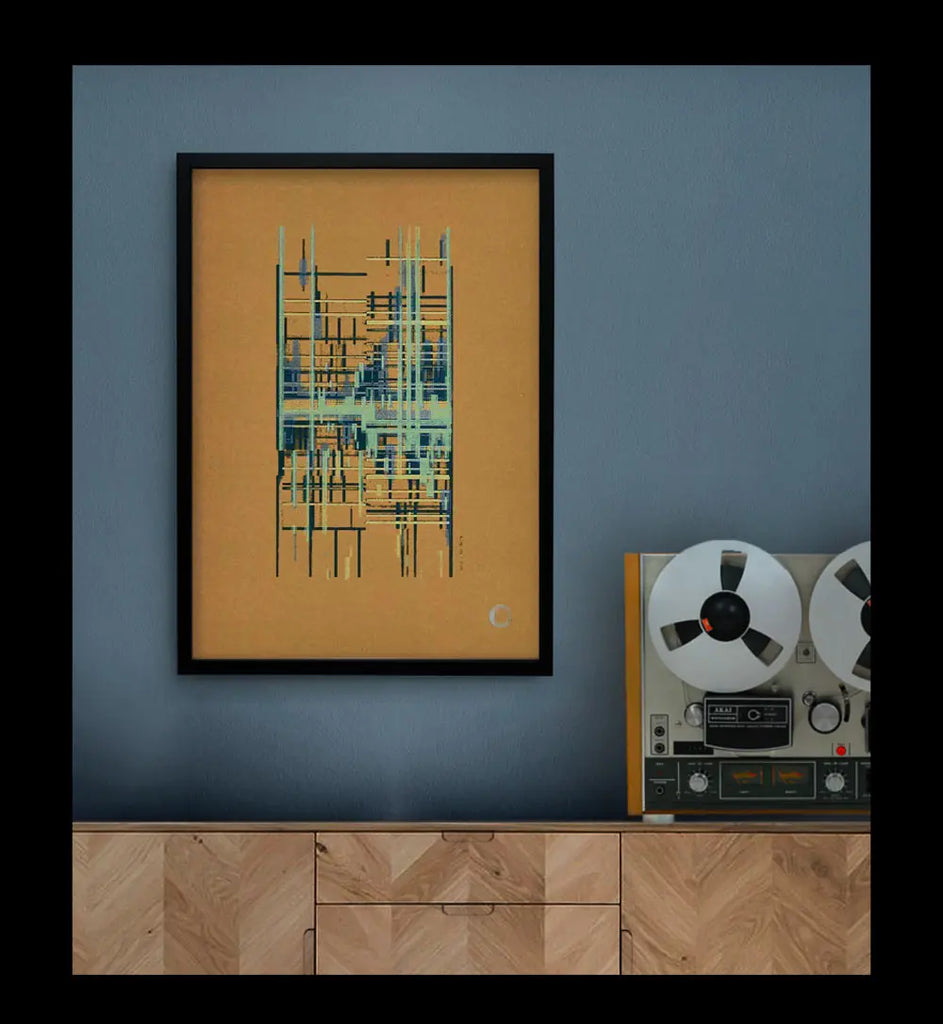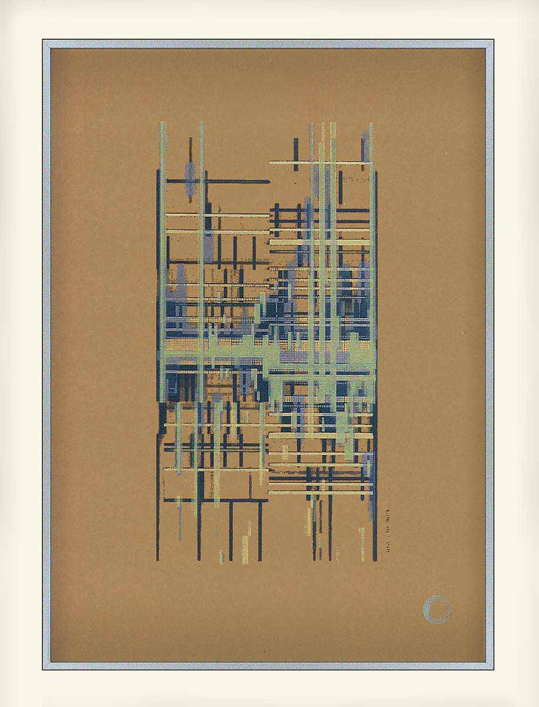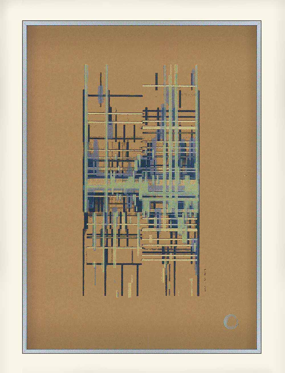 Abstract silkscreen art print featuring 7layers of hand applied acrylic inks.