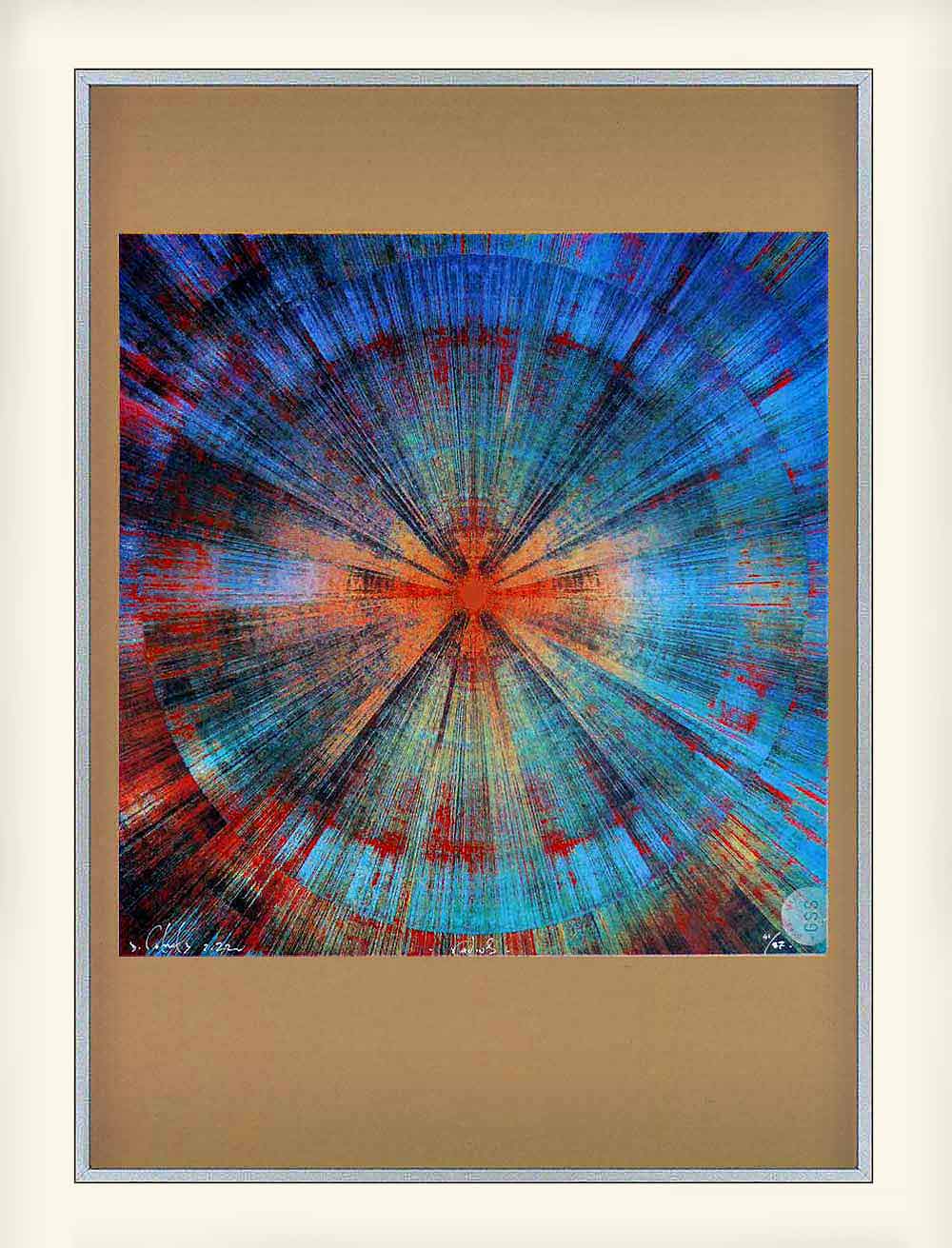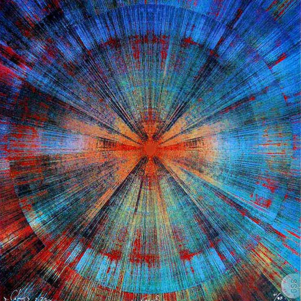 Abstract silkscreen art print featuring ten layers of hand applied acrylic inks.