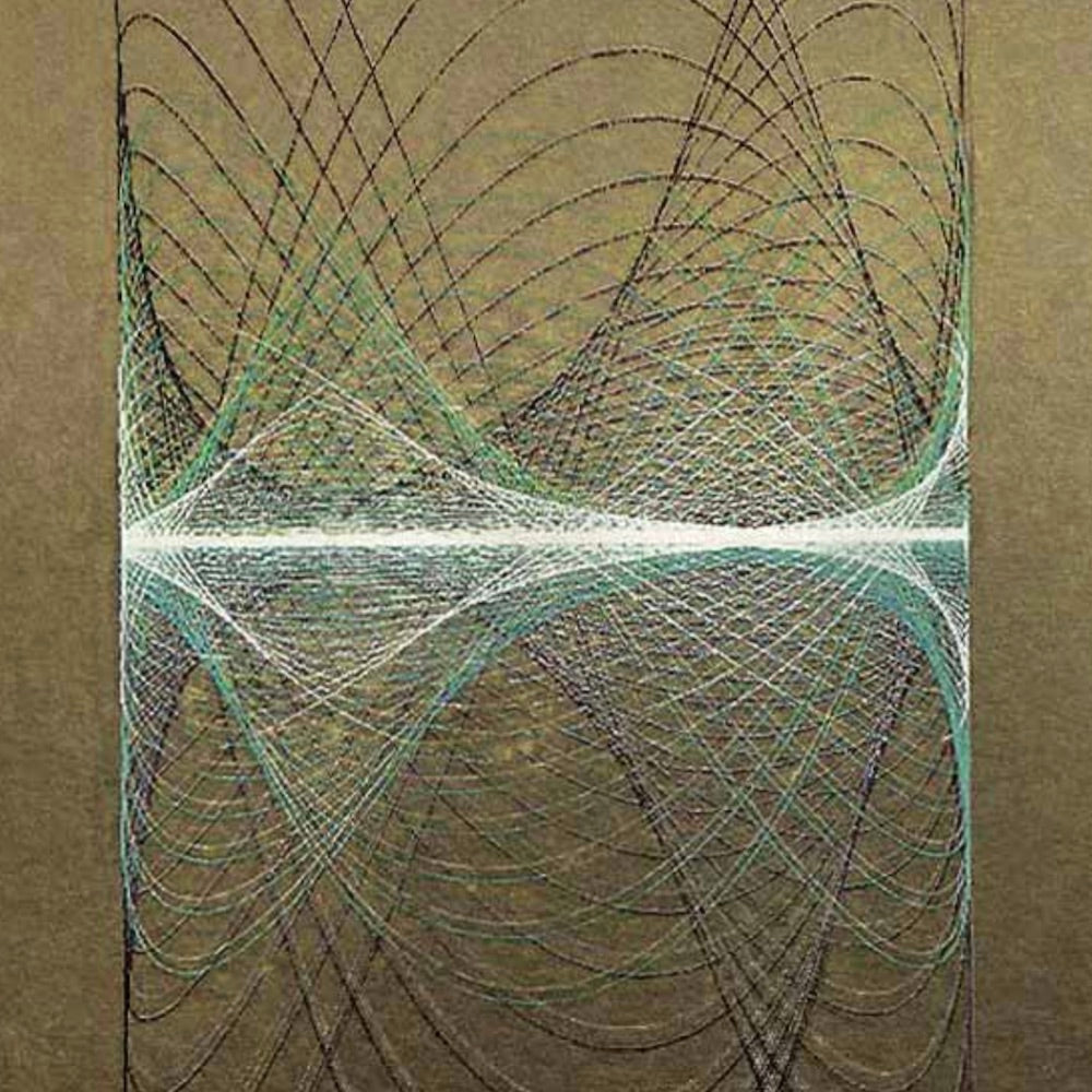 Abstract silkscreen art print featuring ten layers of hand applied acrylic inks.