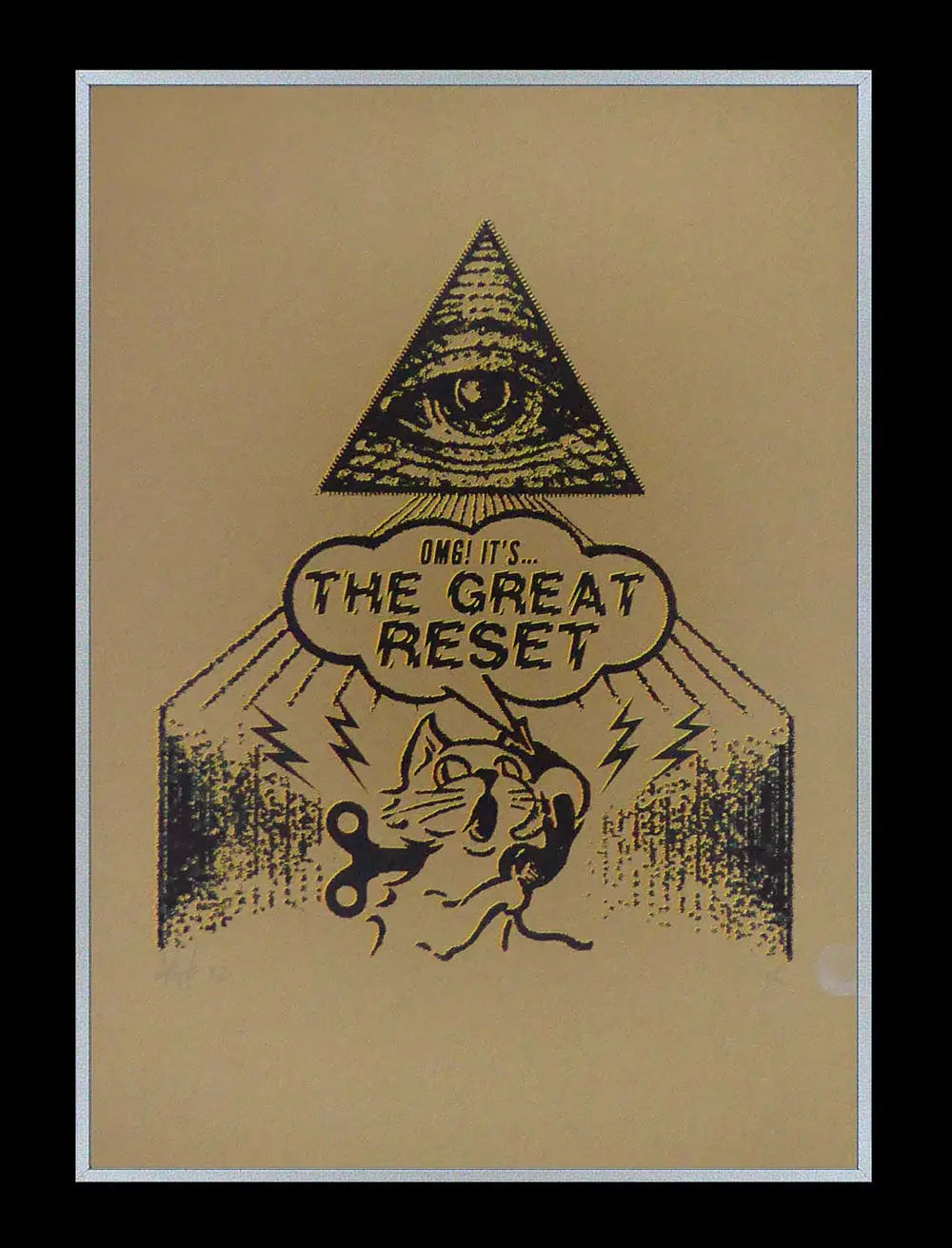 This release has a two stage flourescent underprint as a base layer for the black foreground image to sit upon. The flourescent colours were off-set printed ever so slightly to help create are very subtle eye jarring effect. This required great accuaracy when making these pieces but the effect against the black ink is nothing short of stunning and gives image a real visual lift off the sheet.